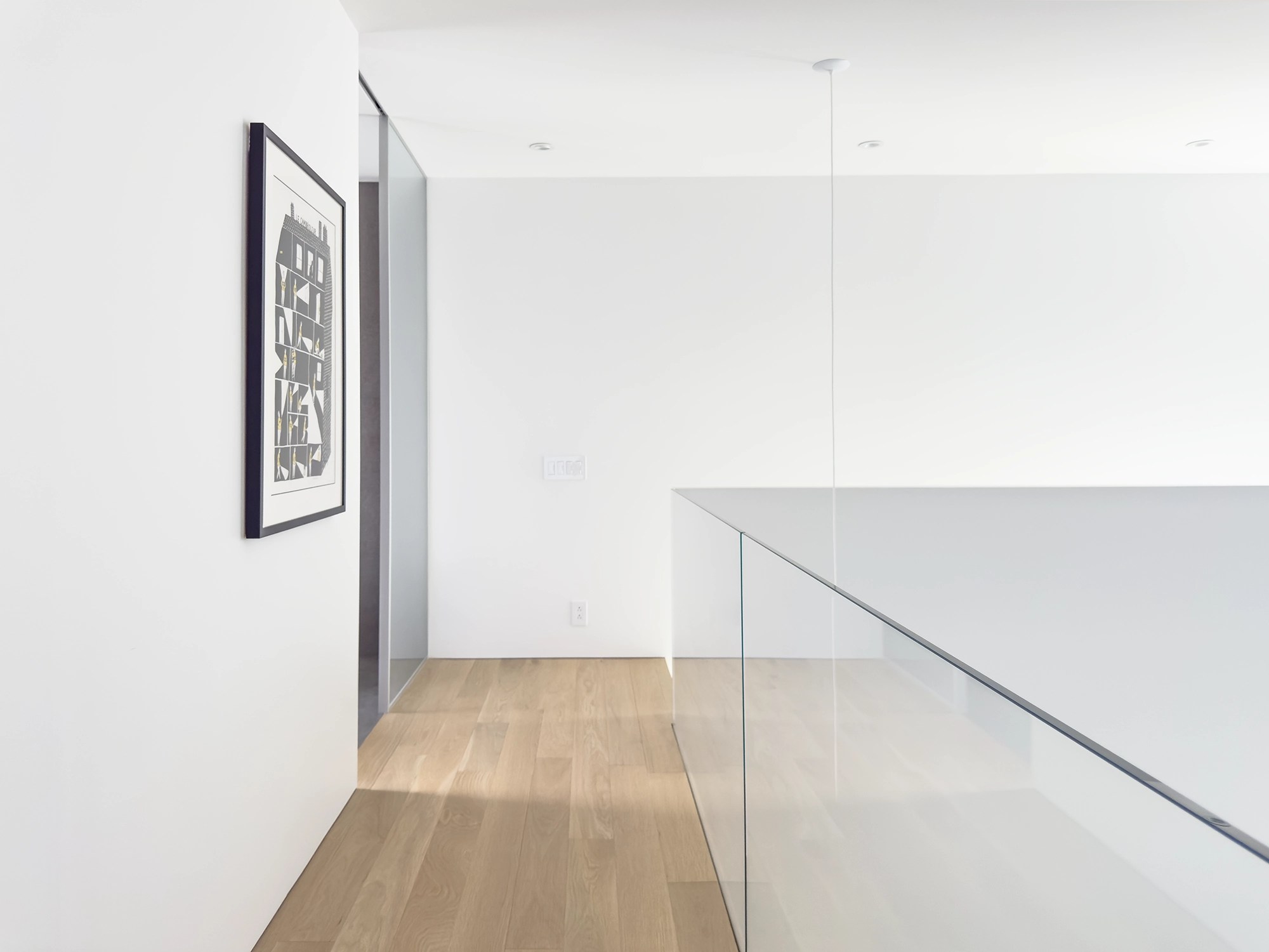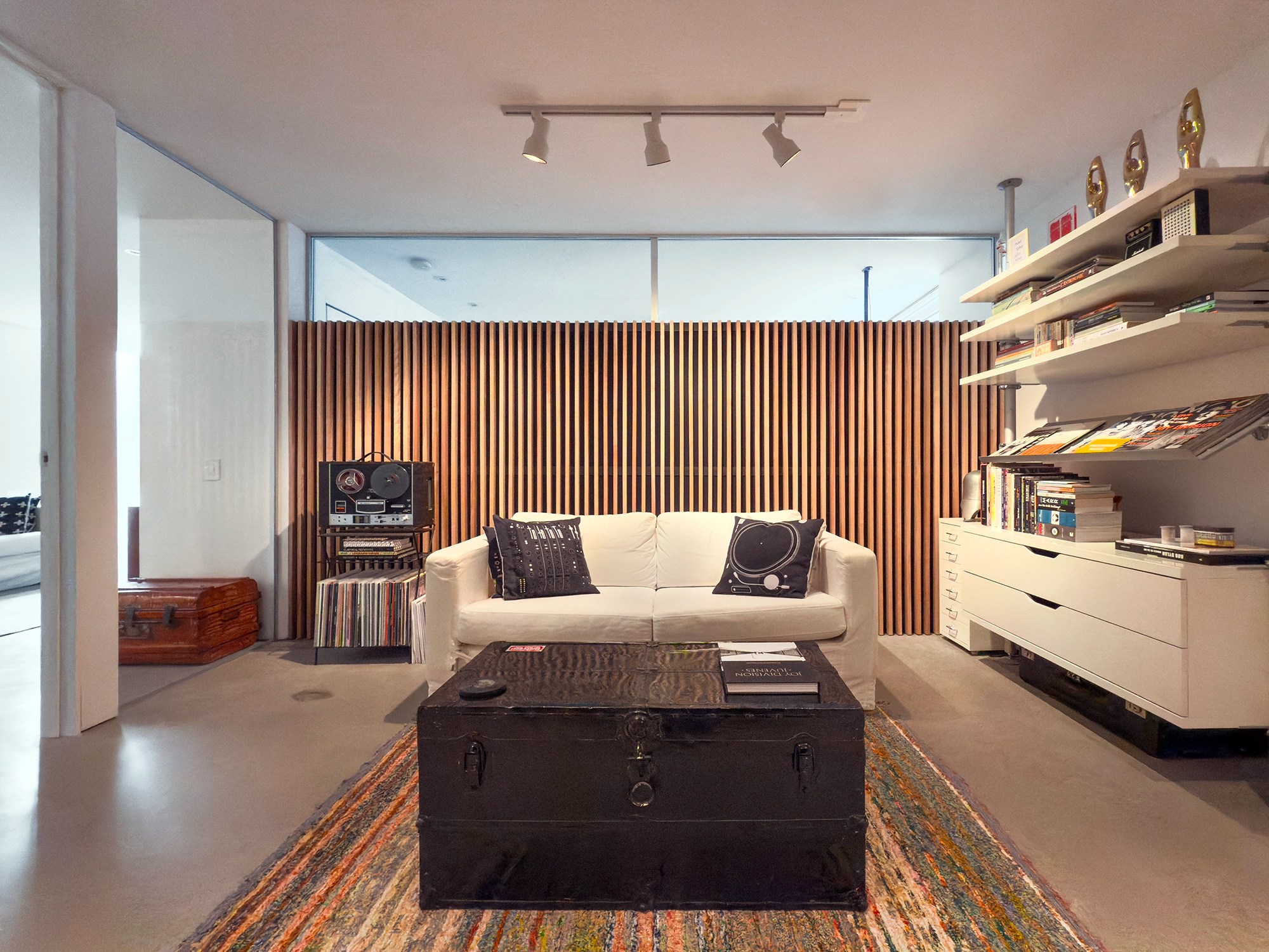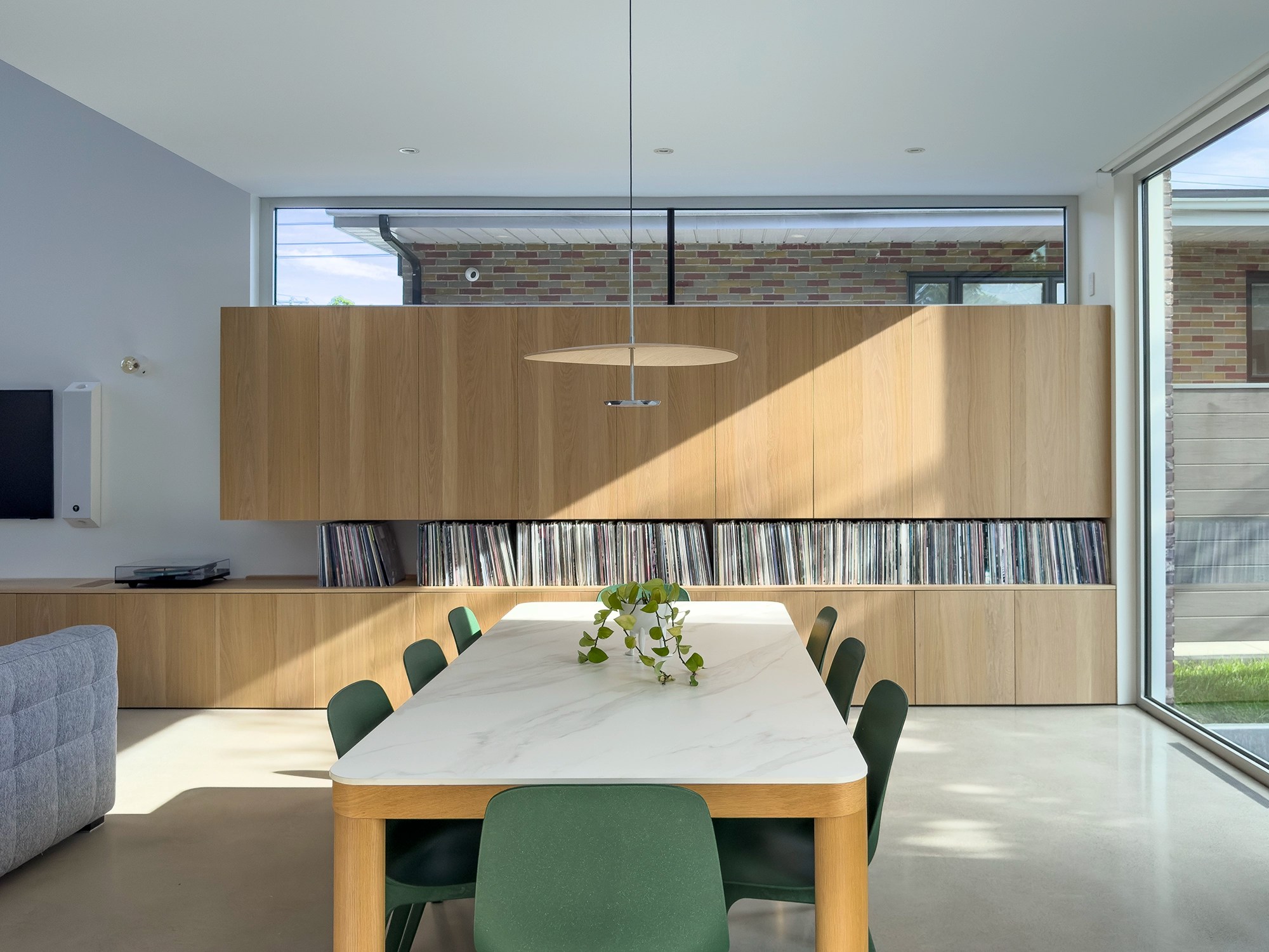 « Although the lot dimensions dictated the compact footprint, a careful arrangement of glazing and space planning allows the home to feel light and voluminous. « From the street, you can’t imagine there is so much space and light inside hidden behind the brick, » says Deelers. »